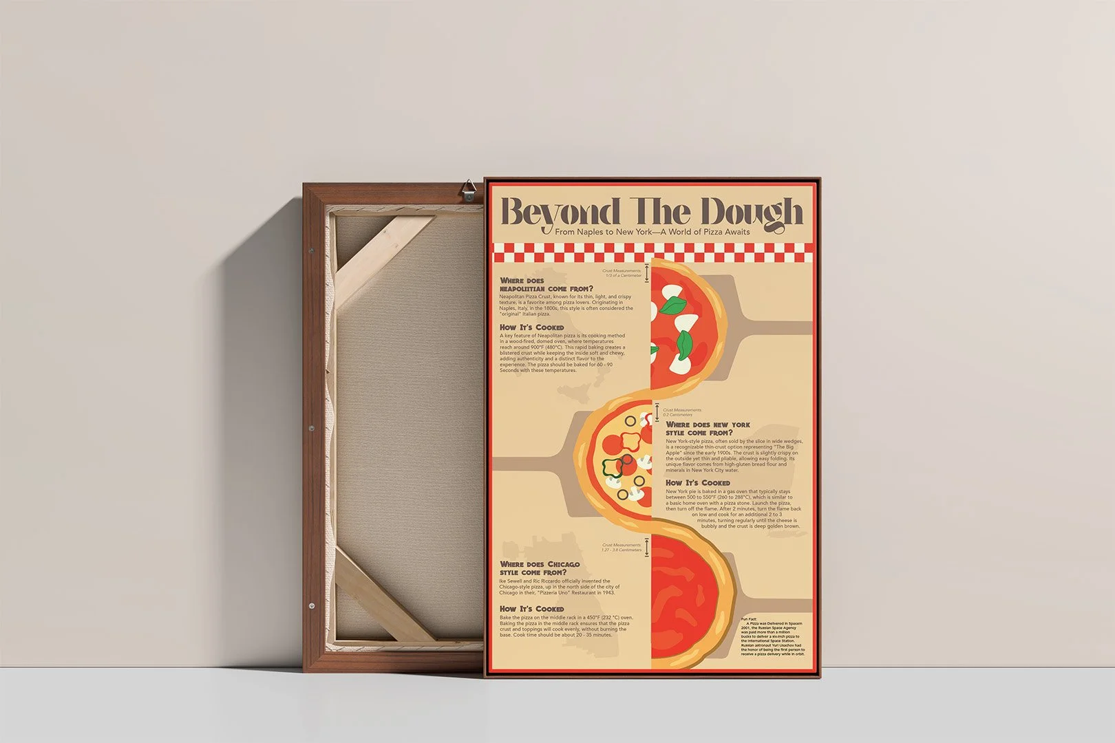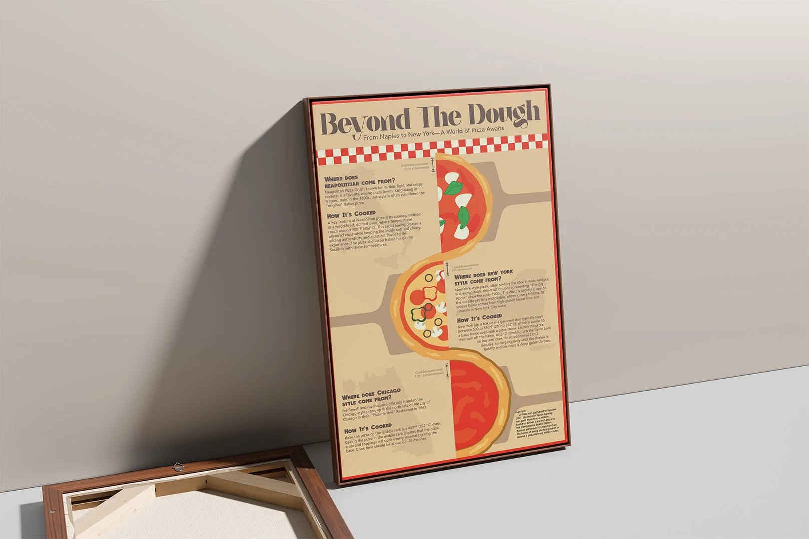 Summary: This infographic project explored the techniques and history of different pizza styles. The goal of this project was to break down information in a clean, engaging way, using hierarchy, layout, and playful illustrations. The design combines bold typography, simple graphics, and a structured grid.